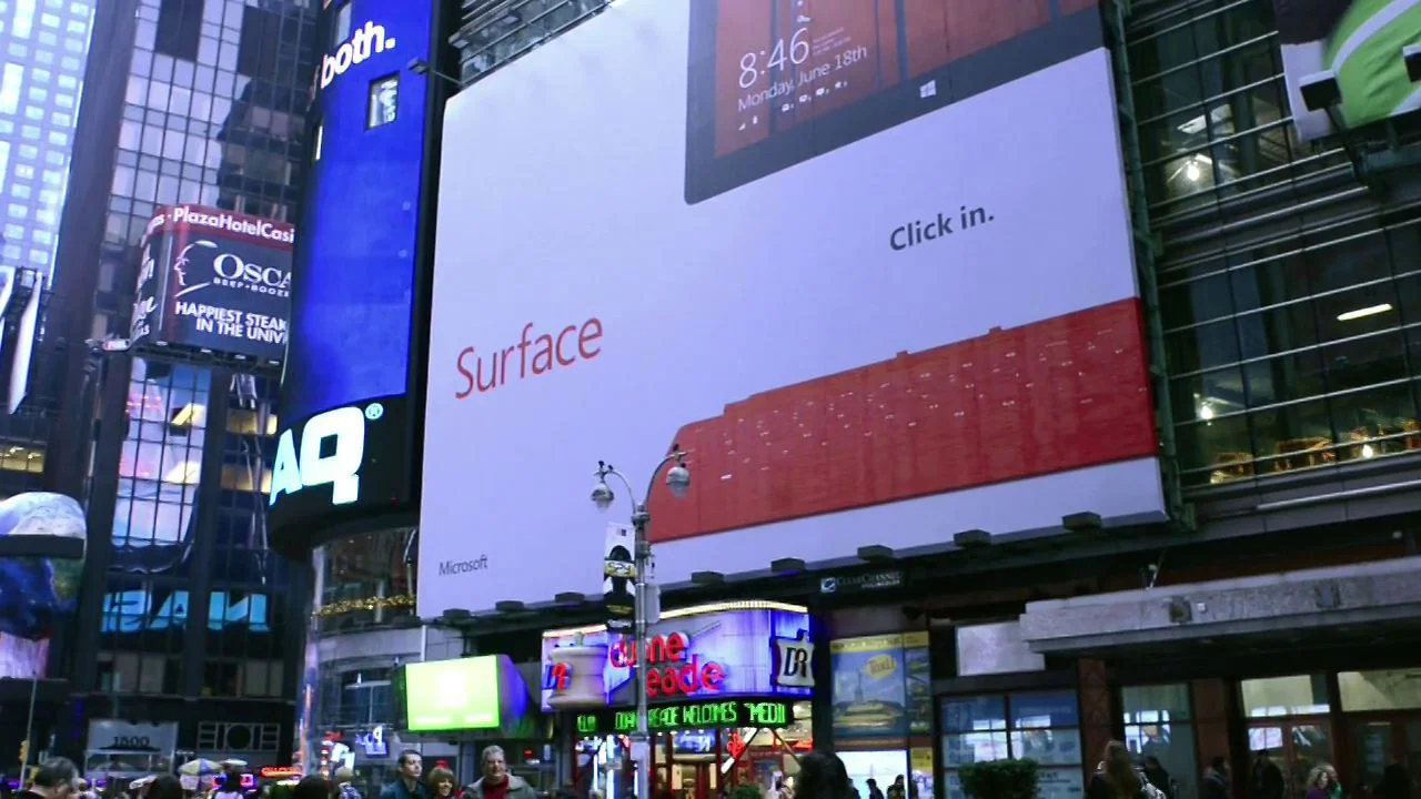After our well-received street art teaser campaign had the tech and design worlds teeming with speculation about Microsoft’s Surface PC tablet, we launched outdoor advertising for the main campaign coinciding with the tablet’s October 2012 product release. The ads featured images of the Surface tablet from multiple angles with the slogan “Click In”—a reference to the signature keyboard that literally clicks in to the base of the tablet. Our sleek, product-focused aesthetic reflected Microsoft’s new direction, signaling a departure from conventional visual elements generally associated with advertising and allowing the product and the action of “Click In” to connect with the viewer and prove memorable. Incorporating print, outdoor and digital components, our campaign successfully infused an established global brand with a fresh perspective, communicated this message across a wider audience and sparked considerable media and consumer buzz.